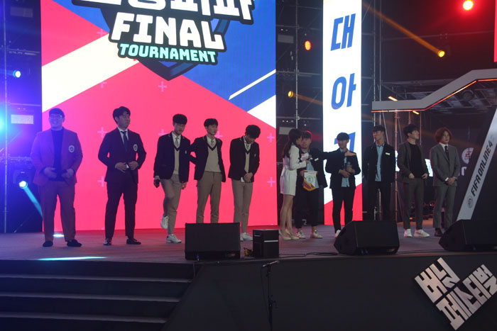 경기 시작 전 무대에 올라온 '피파온라인4' 박정무 실장은 "고등피파와 창과방패 등 다양한 오픈리그로 유저분들에게 즐거움을 드리고자 노력했다"며 "앞으로도 즐거운 자리를 만들 수 있도록 노력하겠다"고 덧붙였다. 이어진 식전 행사로 관람객을 위한 '버닝 퀴즈'를 통해 다양한 경품을 지급했다. 이후 '갤럭시 익스프레스' 밴드가 피파온라인4 BGM '오예(Oh-Yeah)를, 고등랩퍼3 출신 '이영지&김민규'가 고등피파 공식 음원인 'New History'를 차례로 공연했다.