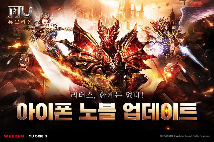 [자료제공 = 웹젠] 웹젠(대표 김태영)이 모바일 MMORPG '뮤 오리진'의 아이폰 이용자를 위해 신규 콘텐츠 ‘노블 시스템’을 업데이트한다.