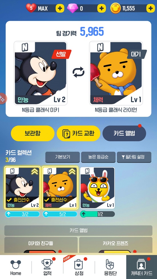 ‘올스타 스매시’ 캐릭터 카드 앨범_ 카카오프렌즈 그리고 미키와 친구들 = 카카오게임즈제공