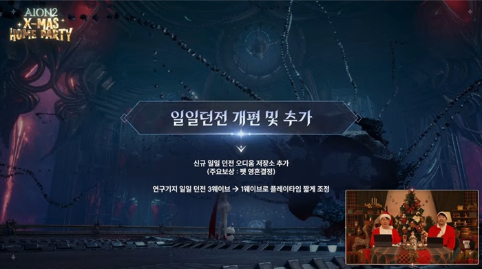 엔씨소프트는 자사의 신작 MMORPG '아이온2'의 크리스마스 특집 라이브 방송을 23일 진행했다.