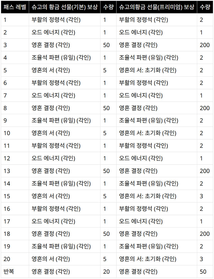 점검 이후부터 신규 키나 패스 '슈고의 황금 선물' 이벤트가 시작됩니다. 기본 50만 키나와 프리미엄 200만 키나로 준비됩니다. 최고 레벨은 20레밸이며, 추가 패스 레벨업 시 반복 보상이 지급됩니다.