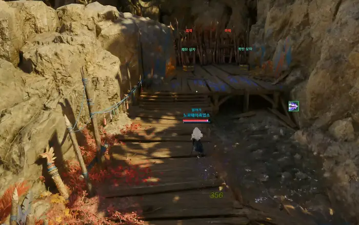 먼저 첫 번째 네임드 몬스터 번견 쿠하푸의 입구는 나무 목책으로 길이 막혀 있는데, 목책 바로 앞에 비치된 폭탄으로 던져서 파괴하면 된다.