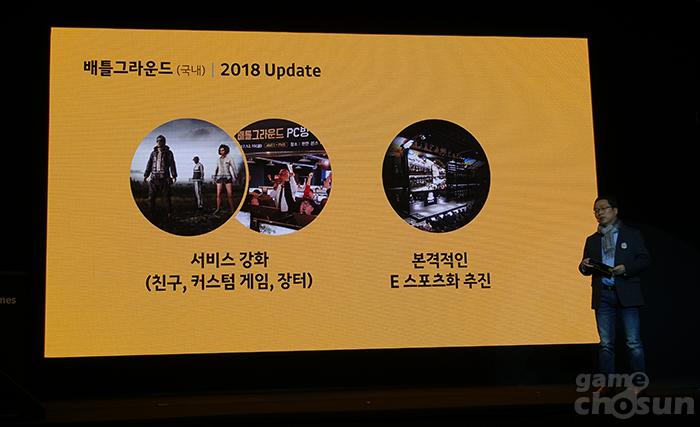 '배틀그라운드'는 지난해 11월 국내서비스를 시작하면서 일 사용자 50만명이 즐기고 있으며 PC방 점유율 1위를 유지 중이다. 2018년도에는 15세 이용가 서비스를 시작으로 친구, 커스텀 게임, 장터 등 콘텐츠 추가할 예정이다. 아울러 e스포츠 대회 개최와 PC방 중심의 오프라인 마케팅 등을 통해 '배틀그라운드' 저변 확대에 나선다.