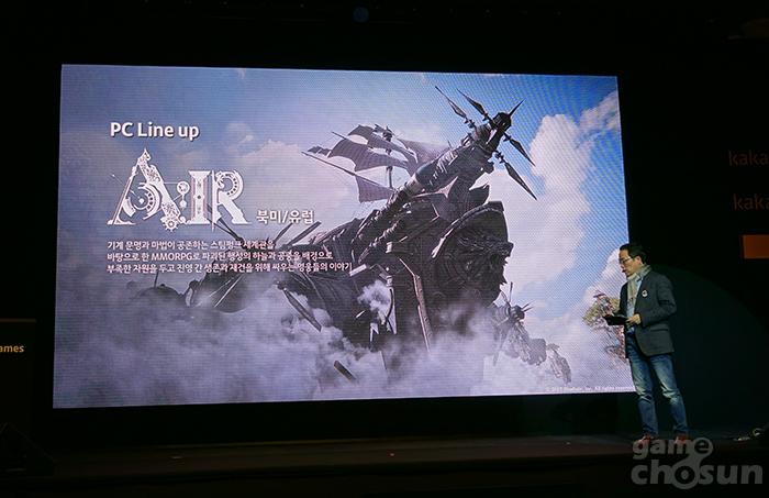 블루홀에서 개발 중인 MMORPG '에어'는 2018년 3분기 북미/유럽 시장에서 1차 비공개 테스트를 진행할 예정이다. 카카오게임즈는 글로벌 퍼블리싱 역량을 더해 완성도 있는 서비스를 제공한다는 계획이다.
