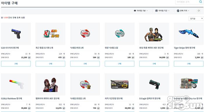 서든어택 플리마켓에 등록된 아이템들 = 공식 홈페이지