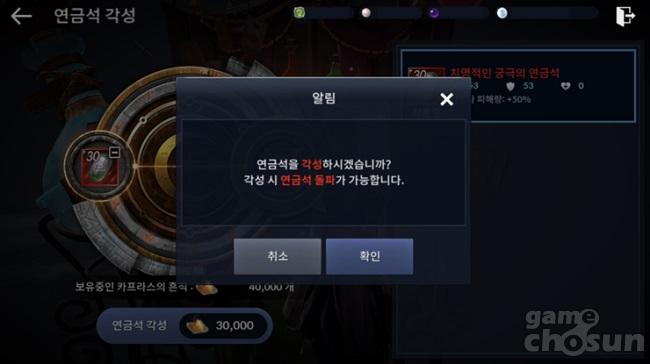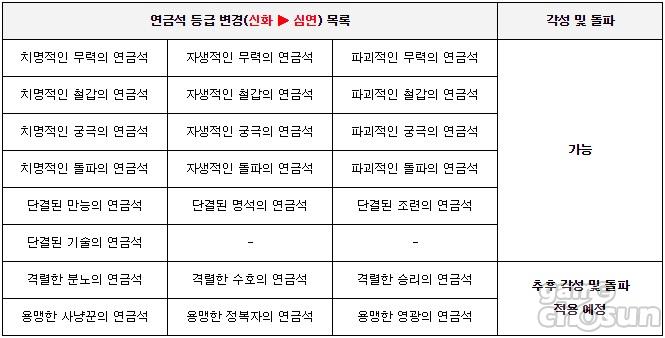 연금석 각성이 완료되면 동일한 유형의 연금석을 사용해 연금석 돌파를 시도할 수 있다.