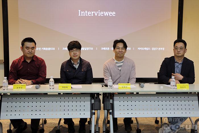 2차 CBT와 관련된 콘텐츠 소개가 끝난 이후에는 미디어 공동 인터뷰가 진행됐다. 미디어 공동 인터뷰에는 강상구 카카오게임즈 PC사업부 본부장과 김형준 크래프톤 개발 디렉터, 조두인 크래프톤 기획 총괄 디렉터, 채종득 크래프톤 테크니컬 디렉터가 참여했다.