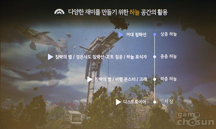 김형준: 지상에서 사냥을 하면 얻게 되는 아이템을 주거지에서 재생산하고, 재생산될 물품을 합쳐 비행선을 띄운다. 비행선으로 재화를 획득하다가도 연료에 한계가 있어 내려와야 한다. 이를 반복하며 체험할 수 있다.