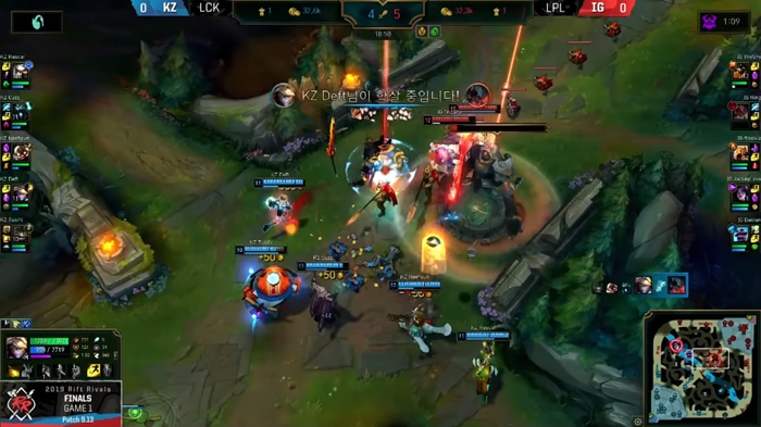 결승전 첫 경기는 킹존 드래곤 X(이하 KZ)와 인빅터스 게이밍(이하 IG)의 대결로 시작됐다.