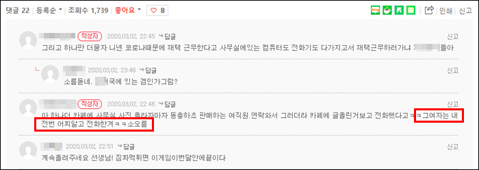 고객센터는 A씨에게 카페 글을 보고 전화를 했다고 전달했다. 하지만, A씨는 공식 카페에 자신의 전화 번호를 기재한 적이 없다고 주장했다.