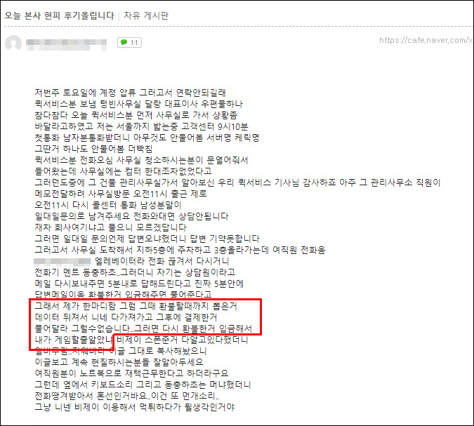 A씨가 엑스엔게임즈 사무실을 직접 찾아왔고, 아무도 없는 빈 사무실이었다는 글을 공식 카페에 올리자 이때부터 A씨의 휴대폰을 통해 고객센터에서 전화가 오기 시작했다. 고객센터는 이전까지 전화와 대면 상담은 불가능하고, 1:1 문의로만 접수를 받는다고 했었던 곳이다.