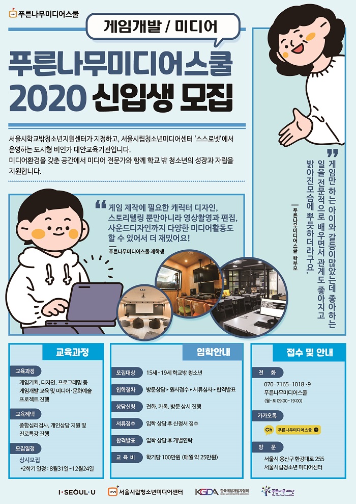 하반기 신입생 모집과 관련된 자세한 내용은 푸른나무미디어스쿨 홈페이지 또는 유선문의를 통해 확인 할 수 있다.