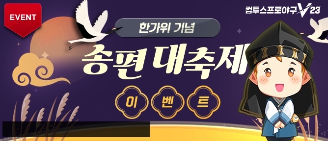 인기 매니지먼트 야구 게임인 ‘컴프매2023’도 ‘한가위 맞이 송편 만들기 이벤트’를 진행 중이다. 게임 내 출석, 리그 플레이, 선수 영입 등 미션을 수행하면 송편 누적 수에 따라 ‘구단 선택 몬스터 선수’, ‘구단선택 에이스 선수’ 등의 보상과 교환할 수 있다. 올해 출시 10주년을 맞이해 연이어 이벤트를 펼치고 있는 ‘컴프매2023’은 추석 이후에도 10주년 기념일인 10월 10일까지 역대급 이벤트를 준비해 유저들을 만날 예정이다.