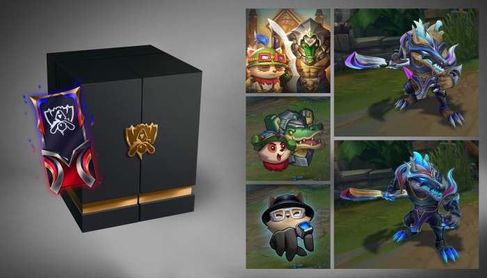 상자를 열면 이번 LoL 월드 챔피언십의 모토인 '더 그라인드. 더 글로리(The Grind. The Glory.)'가 좌우에 각인되어 있으며 가운데에는 한정판 레넥톤 스킨이 그려져 있다.