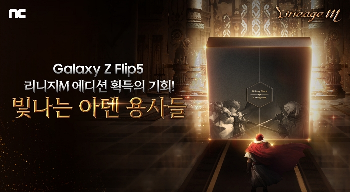 '갤럭시 Z 플립5 리니지M 에디션'은 ▲갤럭시 Z 플립5 ▲갤럭시 워치 ▲리니지M의 역사와 12종의 클래스를 상징하는 기념 주화 ▲리니지M 테마가 적용된 플립 수트 케이스 ▲초고속 무선 충전기 듀오 등으로 구성됐다. ‘빛나는 아덴 용사들’ 이벤트 당첨자는 10월 18일 발표한다.