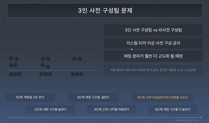 우선 3인 팀을 사전에 구성할 때 매칭 분리 과정을 고도화해, 보다 동등한 조건의 팀을 만날 수 있도록 개선했다. 또한, ‘미스릴’ 티어(상위 700위)의 이용자부터는 사전 팀 구성이 금지돼, 모든 ‘이터널 리턴’ 이용자들이 동등한 실력과 조건을 가진 상대를 만나도록 유도했다.