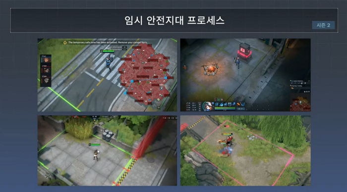 우선, 배틀로얄 장르에서 흔히 발생하는 특정 지역에 ‘전투 몰림’ 현상을 해결하기 위한 개선사항을 공개했다. 게임 내 등장하는 금지 구역 수를 2~3일차에는 줄이고 5일차에 늘려, 이용자들이 한 곳에 몰리는 현상을 근본적으로 해결하겠다는 방침이다. 또, 마지막 지역의 임시 안전지대 간 거리 조정 및 각 팀의 정보 노출을 최소화하는 방향으로 개편된다.