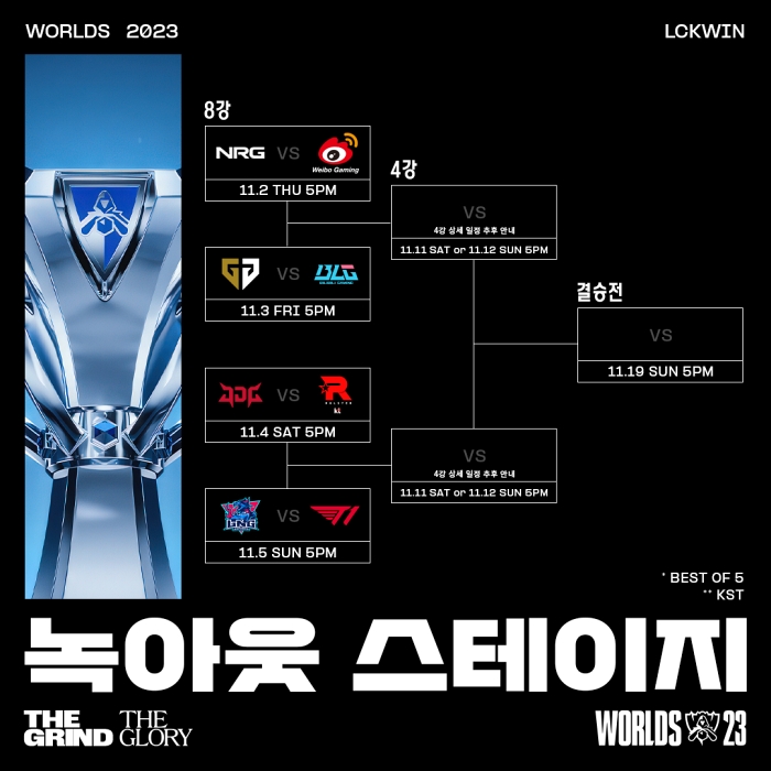 스위스 스테이지 마지막 경기가 끝난 이후 8강 이후 경기인 녹아웃 스테이지 추첨식이 진행됐다. 2022년 LoL 월드 챔피언십 우승팀인 DRX의 서포터 '베릴' 조건희가 추첨자로 나섰고 LCK는 모두 LPL 팀과 대결하는 대진표가 완성됐다.