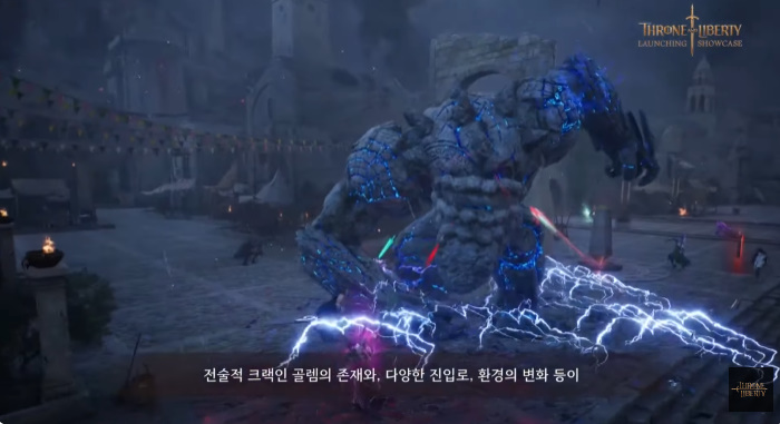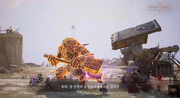 길드 간의 경쟁을 다룬 '공성전' 콘텐츠도 준비돼 있다. 안종옥 PD는 "공성전은 개발 기술의 집약체"라고 소개하면서 "1,000명이 넘는 인원이 접속해도 끊김 없는 서버 기술력과 직접 거대 생명체인 골렘으로 변신해 전쟁에 참여할 수 있는, 지금껏 경험하지 못한 공성전을 선보이기 위해 많은 도전이 있었다"라고 말했다.