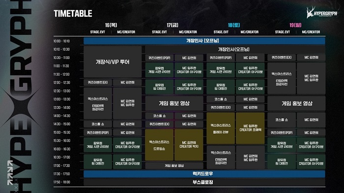 하이퍼그리프는 벡스코 제2전시장 F8에서 총 20부스 규모로 전시를 개최하며 스탬프랠리과 미니 게임, 퀴즈 이벤트, 코스프레 포토타임 등 즐길거리를 제공한다.