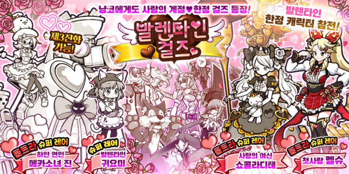 이벤트 기간 한정으로 발렌타인 의상의 캐릭터들이 출현하는 ‘발렌타인 걸즈’ 뽑기도 개최된다.