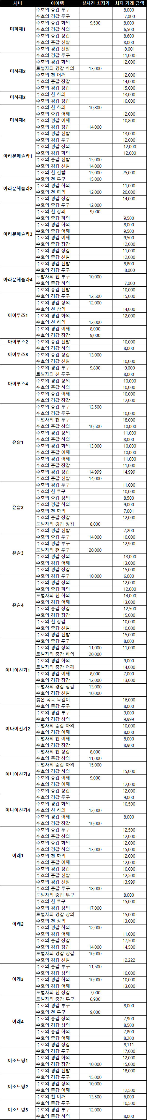 ※ 시세표 '평균가'는 이소드녕3, 4서버의 데이터가 제외된 수치입니다.