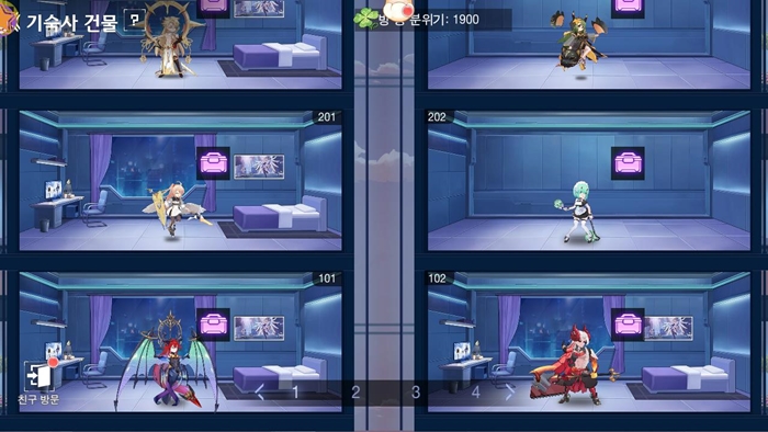 수사관 기숙사는 수사관들이 휴식을 취하는 공간으로, 플레이어들은 수사관들과 대화하거나 선물을 주는 등의 상호작용을 통해 친밀도를 높일 수 있다. 친밀도가 높아질수록 수사관들의 속성 보너스도 증가한다. 레벨 48 이상부터는 기숙사 내부를 자유롭게 꾸밀 수 있는 기능이 추가되며, 이를 통해 분위기 지수를 높일 수 있다. 방의 '분위기'가 높아질수록 일정 시간마다 생산되는 가구 코인의 수량이 증가한다. 가구 코인은 특정 상점에서 희귀 아이템으로 교환할 수 있다.