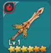 새롭게 등장한 무기는 4성 불 속성 무기다. 4성 불 속성 무기를 채택한 이유는 ‘기본 공격 피해량이 증가’ 때문이다. 4성 물 속성 무기는 ‘스페셜 스킬 피해량이 증가’하고 4성 나무 속성 무기는 ‘기본 스킬 피해량이 증가’한다. 일반적인 경우 ‘기본 공격 피해량 증가’가 ‘스페셜 스킬 피해량 증가’와 ‘기본 스킬 피해량 증가’보다 좋기 때문에 채택되었다.