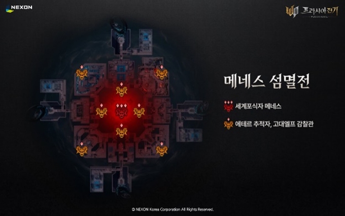 ‘메네스 섬멸전’은 순차적으로 등장하는 보스를 처치하며 가장 높은 점수를 획득한 결사가 최종 승리하는 레이드 콘텐츠다. 던전에 진입할수록 더욱 강력한 보스가 등장하며, 맵 중앙에 위치한 최종 보스 ‘메네스’를 두고 결사 간 끊임없는 경쟁이 펼쳐질 예정이다. 특히, 캐릭터의 명중 능력치에 상관없이 피해를 입힐 수 있어 모두가 부담 없이 참여 가능한 점이 특징이다.