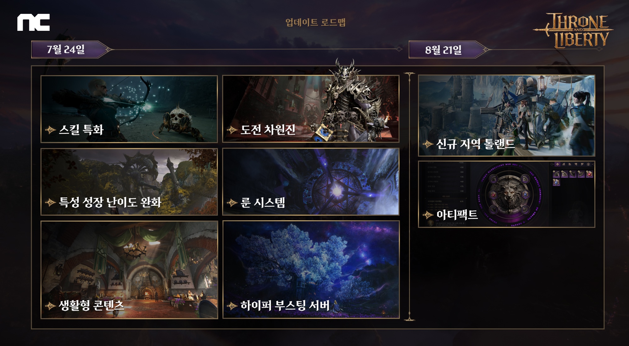 엔씨(NC)는 8월 21일 신규 지역 ‘톨랜드’를 연다. 이용자는 △최고 레벨 55로 확장 △6종의 필드 사냥터와 3종의 필드형 던전 △4종의 필드 보스와 2종의 아크보스 △5종의 협력 던전 △신규 2단 장비와 장신구 등의 새로운 콘텐츠를 즐길 수 있다.