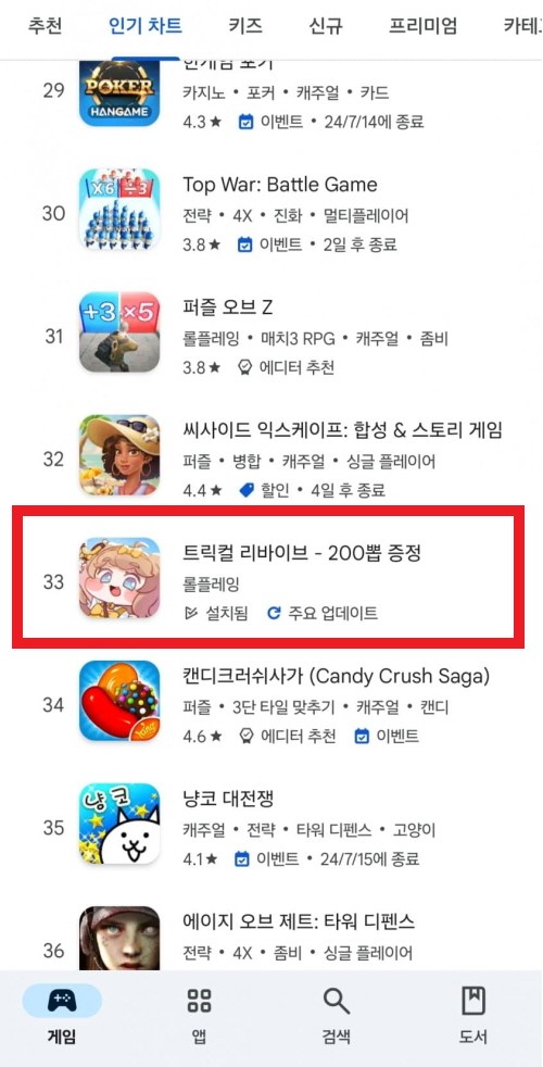 [자료제공 = 에피드게임즈] 에피드게임즈는 27일 자사의 모바일게임 '트릭컬 리바이브'에서 매출 순위 반등을 이뤄냈다고 전했다. 이 게임은 서비스 시작 반주년 당시 최고 매출 기록인 38위보다 높은 구글플레이 매출 순위 33위를 기록 중이다.