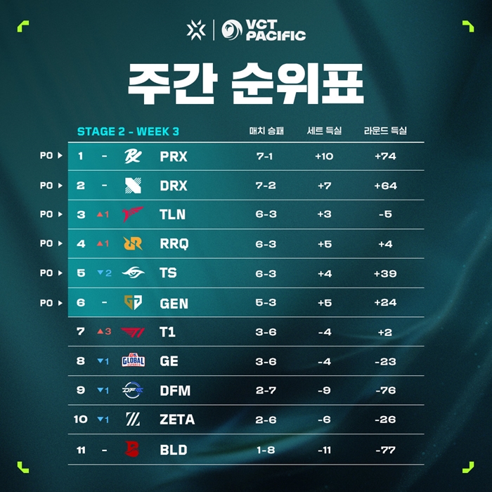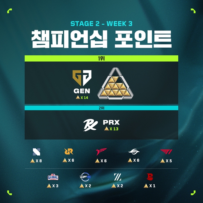 젠지가 스테이지 2 정규 리그에서 연승을 이어가며 시즌 플레이오프 진출에 성공했다. 젠지는 지난달 30일(일) VCT 퍼시픽 스테이지 2 3주 2일 차 2경기에서 블리드 이스포츠(BLD)를 만나 2대1로 승리하면서 최소 6위 자리를 확보, 시즌 플레이오프 진출을 확정했다.