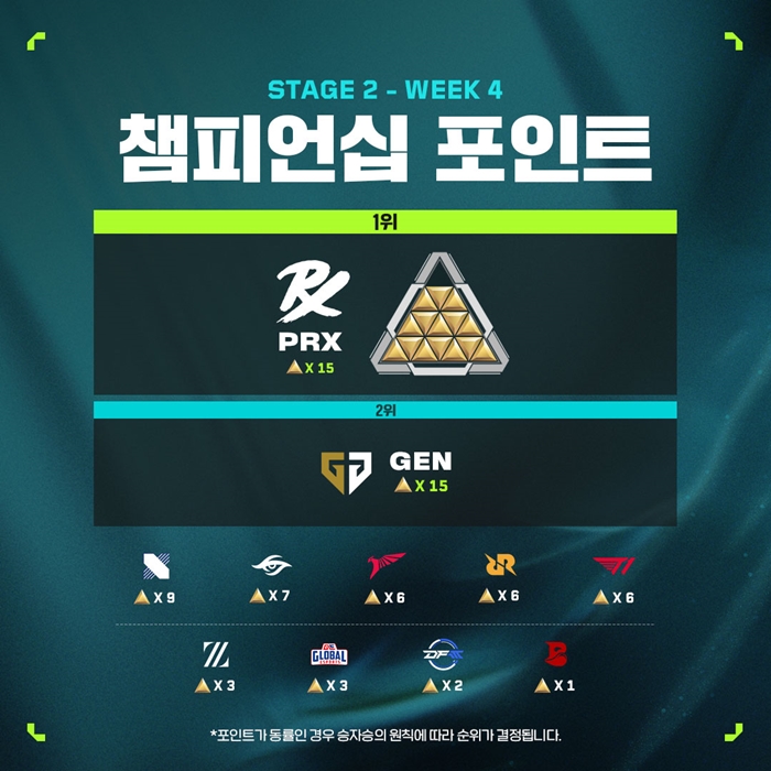 5대5 대전형 캐릭터 기반 전술 슈팅 게임 '발로란트'의 개발 및 유통사인 라이엇 게임즈(한국 대표 조혁진)는 지난 5일(금)부터 8일(월)까지 서울 강남구 삼성동에 위치한 코엑스 신한카드 아티움에서 진행된 발로란트 챔피언스 투어(이하 VCT) 퍼시픽 스테이지 2 4주 차에서 DRX가 8승2패, 2위로 그룹 스테이지를 마무리했다고 밝혔다.