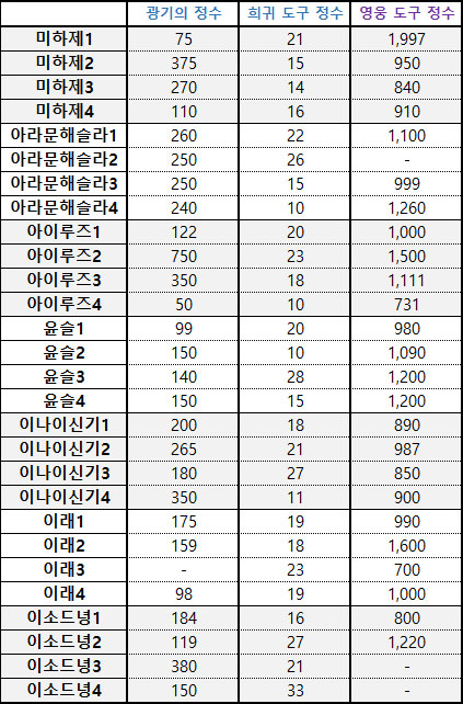 최상위 지역에서 등장하는 채집물에서만 획득할 수 있는 '영웅 도구 정수'는 계속해서 높은 가격에 거래되고 있는 만큼, 무소과금 이용자들이 주목해야할 아이템으로 각광받고 있다.