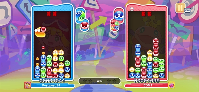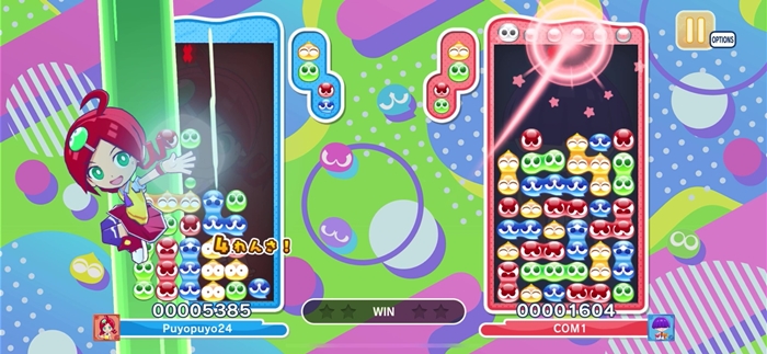 연쇄 도중에도 다음 뿌요를 움직일 수 있다. 논스톱으로 신나게 지워 보자!