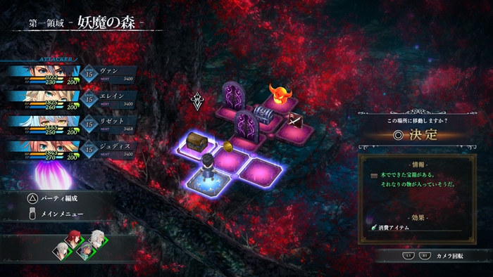 결사 《몸을 먹는 뱀》이 탈취한 《흑의 정원(그림 가르텐)》을 되찾기 위해, 배틀에 참가 가능한 멤버 내에서 파티를 편성하여 성안의 각 영역을 공략하게 됩니다.