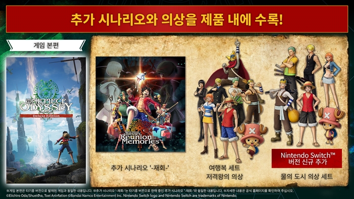 [자료제공 = BNEK] 반다이남코 엔터테인먼트 코리아(지사장 장태근)는 Nintendo Switch™용 ‘원피스 오디세이 디럭스 에디션’(한국어판)을 오늘(2024년 7월 25일) 발매했다고 발표했다.