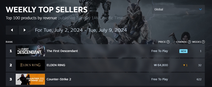 <’퍼스트 디센던트’ 스팀 주간 매출 글로벌 전체 1위>
