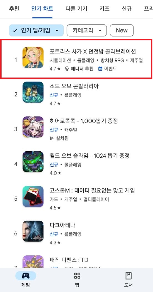국내에서는 카드 교환 시스템 및 신규 월드 업데이트, 그리고 던전밥 콜라보레이션이 시작되면서 곧바로 구글 플레이스토어 인기 1위를 기록했으며, 글로벌 시장에서도 감성을 자극하는 인상 깊은 그래픽과 게임성, 그리고 던전밥 콜라보가 주효하면서 지난 주말 동안 일본 애플 앱스토어 인기 1위를 달성하는 등 긍정적인 반응을 얻고 있다.