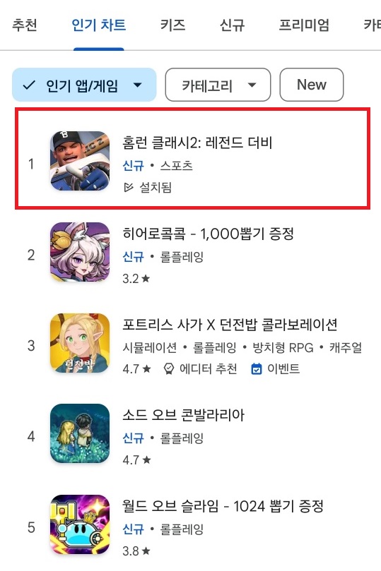 해긴(대표 이영일)이 개발 및 서비스하는 모바일 스포츠 게임 ‘홈런 클래시2: 레전드 더비(이하 홈런 클래시2)’가 구글 인기순위 1위에 올랐다.