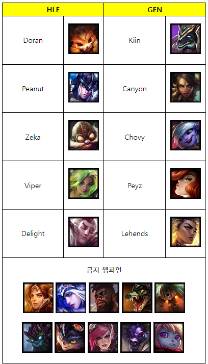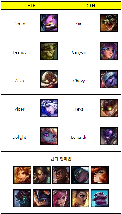 두 팀 모두 무난하게 미드-원딜 카드를 먼저 꺼내들며 밸류 위주의 쌍포 조합 대결이 될 것으로 예측됐으나 GEN이 레드 5픽으로 숨겨두었던 카드로 콩콩이 나서스를 꺼내들며 승부수를 던졌다.