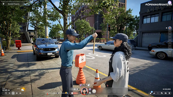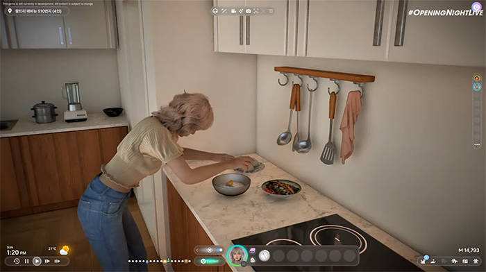 크래프톤의 신작 '인조이'는 오프닝 나이트 라이브 시작 전 온라인 프리쇼를 통해 인게임 영상으로 공개했다. 영상에선 게임 내 등장하는 캐릭터들이 연애를 하고, 요리를 만들고, 다른 캐릭터와 사고로 다투는 등 현실과 비슷한 상호작용을 보여줬다.