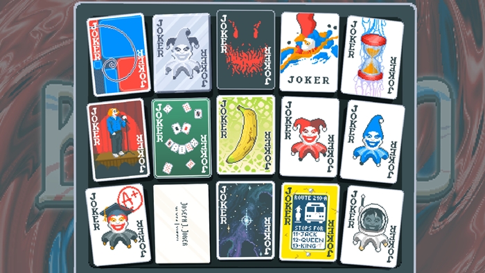 - 조커 카드:게임에는 150장의 조커 카드가 있으며, 각 카드에는 칩을 올리거나 배율이 증가되는 등 다양한 효과가 있다. 스테이지마다 별도의 조커 카드 영역이 있으며, 처음에는 5장의 조커 카드를 놓을 수 있지만 여러 가지 이유로 보유 카드 수가 증가하거나 감소할 수 있다.