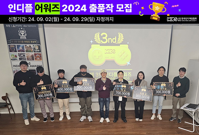 [자료제공 = 한국인디게임협회] 사단법인 한국인디게임협회가 주관/주최하는 국내 유일의 인디게임 시상식인 '인디플어워즈 2024' 시상 행사를 위해 후보작을 모집한다고 밝혔다.