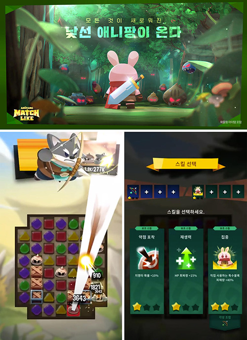4년만의 애니팡 IP 출시작 ‘애니팡 매치라이크’는 ‘애니팡 프렌즈 2기’와 캐릭터 육성, 블록 이동 및 로그라이크형 스킬 조합 등 애니팡 시리즈 최초의 콘텐츠들이 선보이는 모바일게임이다. 특히 대만 등 해외 선출시를 통해 오픈마켓 평점 4.5를 기록하며 호평을 받았던 이 게임은 5개월 간의 소프트런칭 기간을 거치며 파격적인 시도들을 안정적인 재미로 다듬어냈다는 게 회사 측의 설명이다.