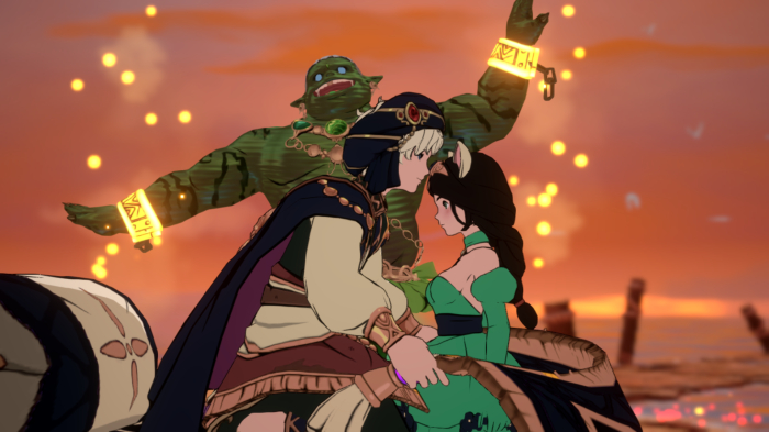 링리리맘보: 만화영화처럼 보다 쨍한 색감을 위해서 디트의 양복은 에스타바니아 낚시터에서만 구할 수 있는 로얄블루를 사용했어요. 윗치의 드레스 역시 시공 전장 참여 보상으로 얻을 수 있는 시트린 염색약입니다. 약간의 수고만 감수하면 쨍한 코디를 꾸밀 수 있답니다!