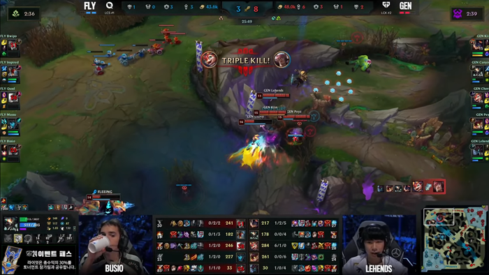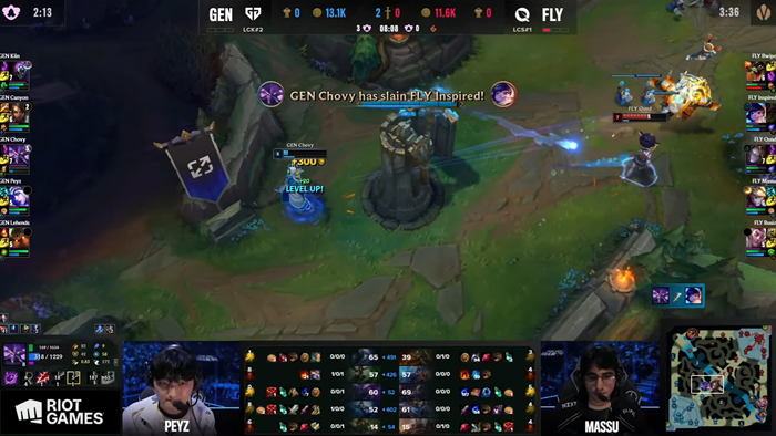 결국 초반의 큰 실수가 42분 경기 내내 GEN을 압박했고 끝까지 열세를 뒤집지 못한 GEN이 FLY에게 2점째를 내주며 매치포인트를 주게 된다.