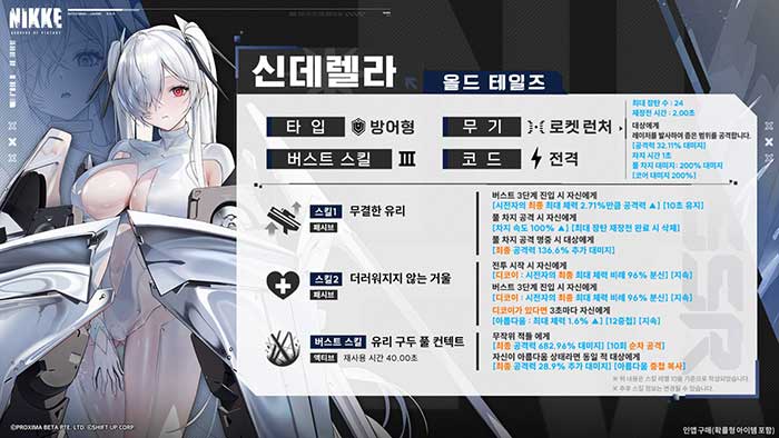 '신데렐라'는 '3버스트', '방어형'에 '로켓 런처(RL)'를 사용하는 '전격' 코드 니케입니다.