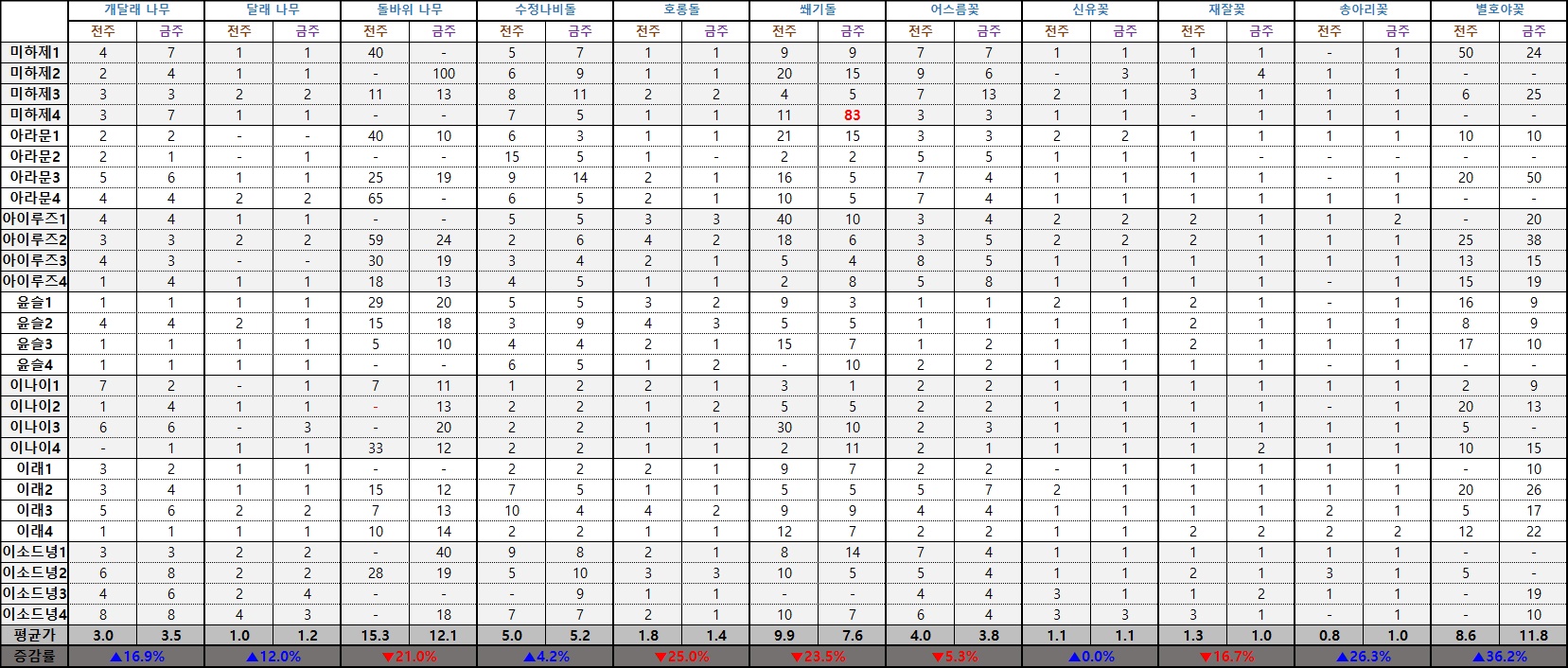 ※ 시세표는 실시간 최저가를 기준으로 작성됐으며 '평균가'는 최대 및 최소 가격을 제외하고 계산된 수치입니다.
