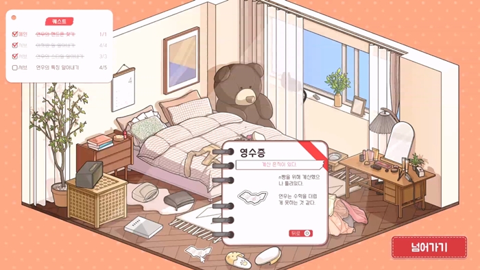 ●추리: 단서를 모두 클릭하여 다이어리에 모아라. 단서를 모두 모아 업적 수집 및 룩북을 완성하라.